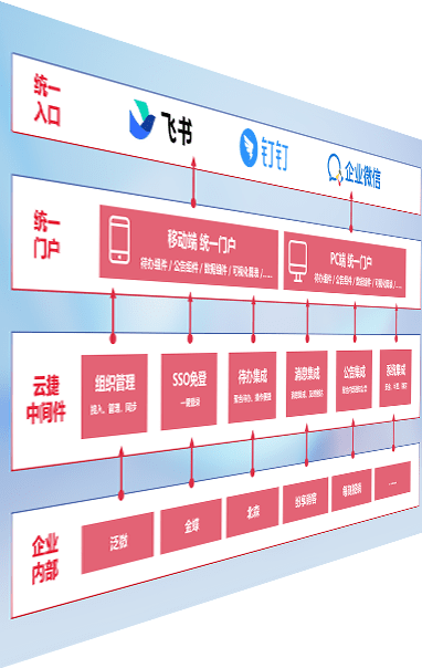 对协作平台提供支持服务,,支持企业应用与协作平台对接,,,包含组织同步、、、、消息集成、、、、待办集成等。。。。支持目前主流的协作平台:钉钉、、、、企微和飞书。。。。